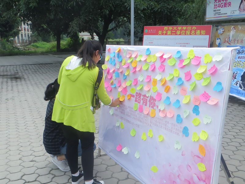 9月28日,汽车与交通学院在临江苑园区和明德广场举行了“一路有你”5.25感恩主题活动。这次活动旨在向同学们宣传学会爱他人、学会感恩的理念,呼吁大家关注自己身边的人。 活动现场热闹温馨,陆续不断地有同学参与到活动中,工作人员向同学们介绍了一些相关的心理知识,并对同学们提出的问题给予了详细回答。很多同学在展板上写下了自己的感恩一句话。 很多同学纷纷表示,参加此次活动让自己学会了要多去关心身边的人、感谢身边的人。只有懂感恩、会感谢的人才会得到更多的支持和关爱。 |