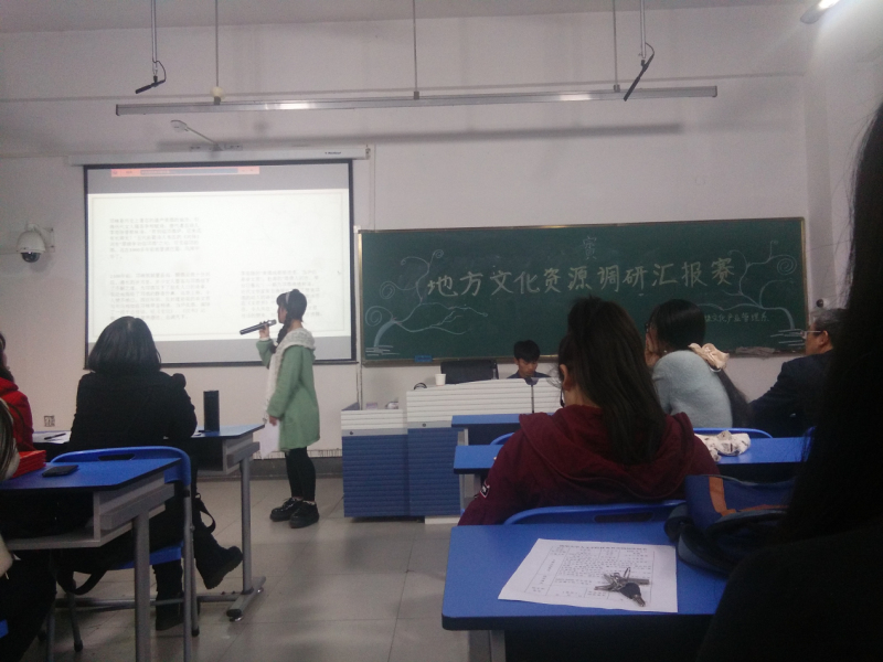 | 3月31日13:30,人文学院文化产业管理专业于6A-126举行地方文化资源调研专业汇报赛。此次活动邀请了文化产业管理系老师及辅导员出席并作为评委,活动由晏梓主持。此次活动旨在提高学生的专业知识技能,同时引导大家充分发挥创新思维、发掘地方文化资源。 首先,主持人宣布比赛规则,随即文化产业管理系系主任邹波发表讲话。接着,2015级文化产业管理专业学生分八个小组就广安宝鼎山佛教文化发展、杜甫草堂的现状与创新发展、安岳石刻保护与文化发展、汉阙文化旅游发展、华蓥山红色旅游文化发展、邛崃文君井的规划、通江红色文化旅游发展以及重庆洪崖洞文化发展8个特色文化资源保护与发展方面以ppt形式作出汇报。汇报结束后,胡冬梅对此次活动作出相应总结:“同学们始于现实,但具有现实批判性;基于管理,但具有策略整合性;起于文化产业管理,但具有专业自觉性。”并对同学们进行了大力赞扬。此次活动第二组获得特等奖,第一组获得一等奖,第八组获得二等奖,第三组获得三等奖,最后,由各位老师为获奖小组颁奖。 此次活动不仅提高了同学们专业知识技能、加强了小组团结合作,也使大家对文化产业管理专业有了更深的认识。