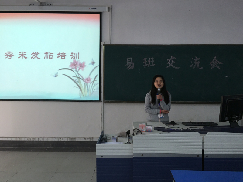 | 3月18日12:20,人文学院团委学生会于6A126召开了易班工作经验交流会。易班指导老师杨恒出席了此次会议,同时到会的还有学院各年级易班班长及易班工作站全体成员,会议主持人由李江莹担任。 会议伊始,主持人首先为大家宣读了上学期各个班级的易班考核成绩。在此次考核中,各年级取得优异成绩的班级易班班长逐个上台分享自己对易班工作的感悟和认识。随后,易班工作站站长张小珊向大家详细阐述了最终修订的《人文学院行政班级易班工作考核制度》,并为各易班班长答疑解惑。最后,易班工作站干事康富贤以PPT的形式为大家简明展示了如何利用秀米软件制作精品易班帖。 此次交流会过程中,各位易班班长积极提问并对学院易班建设工作献言献策,增进了易班工作站与各行政班级之间的交流,为学院易班建设工作打下了良好的群众基础。