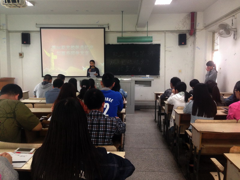 “起来,不愿做奴隶的人们……”,伴随着洪亮的国歌声,政治学院第三十四期入党积极分子动员大会于4月15日13:00在3d301举行。出席本次大会的有学院党委书记刘曙光,学生党总支书记李旭以及即将参加本期党校学习的25名学员。 首先,刘曙光对全体学员提出三点要求:第一,珍惜培训机会,端正入党动机。参加党校培训的学员,都是平时表现突出,能起到模范带头作用的优秀学生,所有学员应珍惜培训机会,严格要求自己,起好模范带头作用;第二,努力学习,完善自我。在学习期间,学员应明确学习目标,端正学习态度,按课程要求完成学习任务,更加深入地学习党的基本知识;第三,遵守规矩,争当优秀学员。在党校学习中,要严于律己,严格按照本期党校的要求进行学习,积极参与到各类讨论、实践活动中去,争当优秀学员。 随后,本期培训班学员代表刘丽莎同学发言。刘丽莎同学代表本期学员向党组织表明了自己坚定的态度,表示在学习过程中将严于律己,努力学习,争当优秀学员。 大会最后,本期培训班班长蹇可佩同学对具体培训安排作了讲解,宣读了党校纪律及注意事项。 本次动员大会的召开,对即将参与党校学习的学员们进行了积极引导,坚定了大家的入党决心。