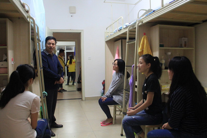 为及时了解2015级新生的具体情况,让凤凰学院新生尽快融入大学生活,9月9日晚,学院党总支书记兼副院长陈召平,学生事务发展中心负责人、学生党支部书记李明慧,15级新生辅导员纪晓芳,团委书记兰海波一行4人前往德馨苑,看望慰问已报到的新同学。 走访过程中,学院领导嘘寒问暖,细致地了解新生们的情况。老师们与新生亲切交谈,了解新生近况,提醒注意事项,校园安全等问题,希望新生早日适应新的环境。除此之外,陈书记还叮嘱新生要与室友处理好关系,室友之间要友爱互助,“你们能聚在一起说明是一种缘分啊,大家都要好好珍惜这种缘分,珍惜同学情谊。” 另外,陈书记还特意了解了新生们选择本专业的原因,大部分新生表示是因为喜欢这个专业。“我因为从小就比较喜欢新闻,填高考志愿时就毫不犹豫地选择了广播电视学。”新生闫小倩说道。 作为本届新生的辅导员,纪晓芳老师对本班同学的适应情况更为关注。她耐心解答新生们提出的各种问题,与学生家长寒暄,鼓励不同地域的同学多多交流,相互了解。 寝室走访不仅使学院领导了解了新生入学的基本状况,也使新生们感受到了凤凰学院这个大家庭的关爱。希望所有凤凰学院的新生能够尽快融入大学生活,开启人生崭新的篇章。