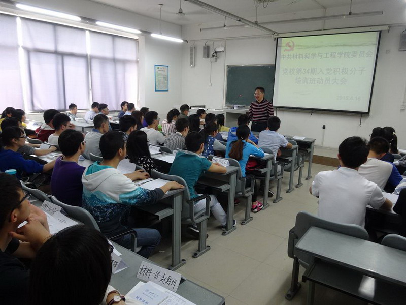 4月15日中午,材料科学与工程学院在5B-302教室召开党校第34期入党积极分子培训班动员大会。学院党委书记魏远文,学生总支书记郭忠林出席了本次会议,第34期入党积极分子共计50余人参加,会议由郭忠林主持。