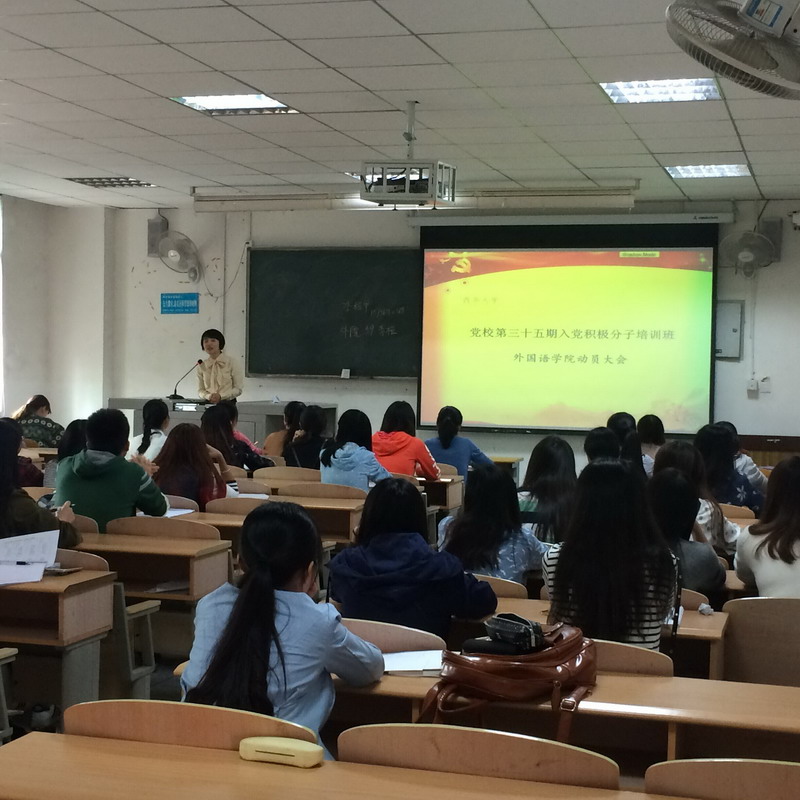 10月21日中午12点,外国语学院在4B502开展了党校第35期入党积极分子培训班动员大会。培训班长李桓甲主持会议,学工办主任王慧及55名入党积极分子到会。