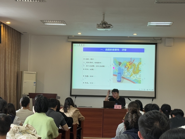 陈震老师结合多个典型案例,深入剖析了国家社科基金项目的选题技巧与关键细节,表示好的选题是项目成功立项的基石,是科研工作的“第一步”。针对师生常见的困惑,他系统讲解了无“指南”情况下的自主选题策略,细心传授规避跟风与空洞等选题误区的方法,并结合自身科研实践进行生动演示。