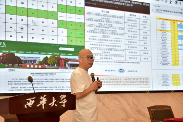 上午,文传浩教授受邀于郫都校区学术交流中心作题为“国家社科基金申报误区、规范与素养”的专题报告。学校党委常委、副校长王永杰出席并致辞,经济学院领导班子、教师代表及相关学院教学科研骨干参加讲座。