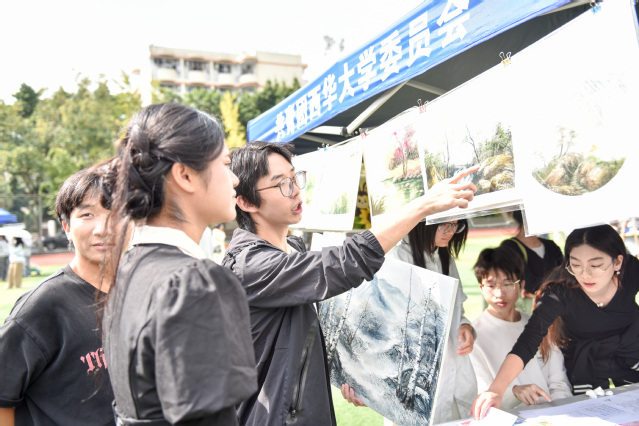 10月18日,2025年学生社团风采展示暨集中招新活动在郫都校区锦地苑操场举行,彭州校区、宜宾校区同步设立分会场。近百个学术科技类、文化艺术类、思政公益类学生社团各展所长,通过实物展示、现场教学、互动体验等形式全面展现学生社团的建设成果。
