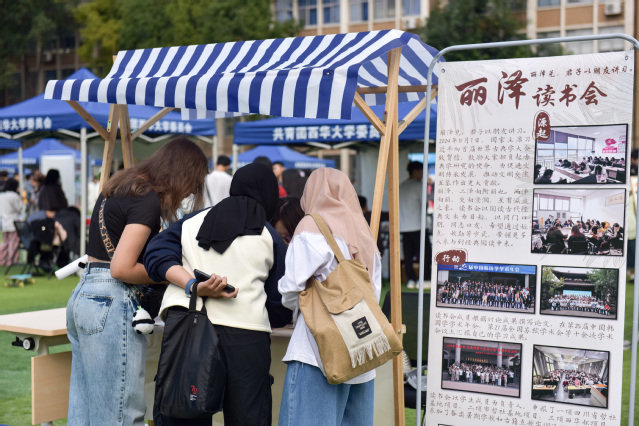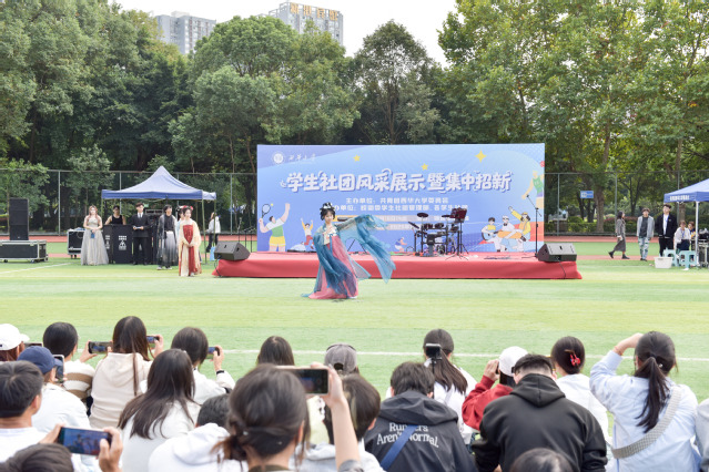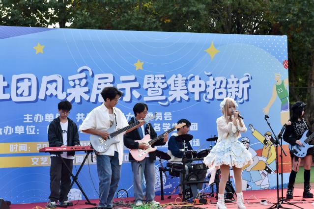 活动现场设置展演专区,音乐协会、拉丁舞协会、九鼎武术协会、木芽声剧社等学生社团相继登台,呈现了声乐、舞蹈、武术、戏曲等精彩节目。同时,邀请了来自四川大学、电子科技大学、西南财经大学等兄弟高校学生社团参与演出,搭建校际青年文化交流和互学互鉴平台。活动共吸引了全校5000余名师生参加。航空航天学院2025级新生洪晨翔说:“通过这次活动,我不仅找到了专业对口的北斗科技协会,更深刻感受到了大学校园文化的丰富多彩,让我对未来的大学生活充满期待。”