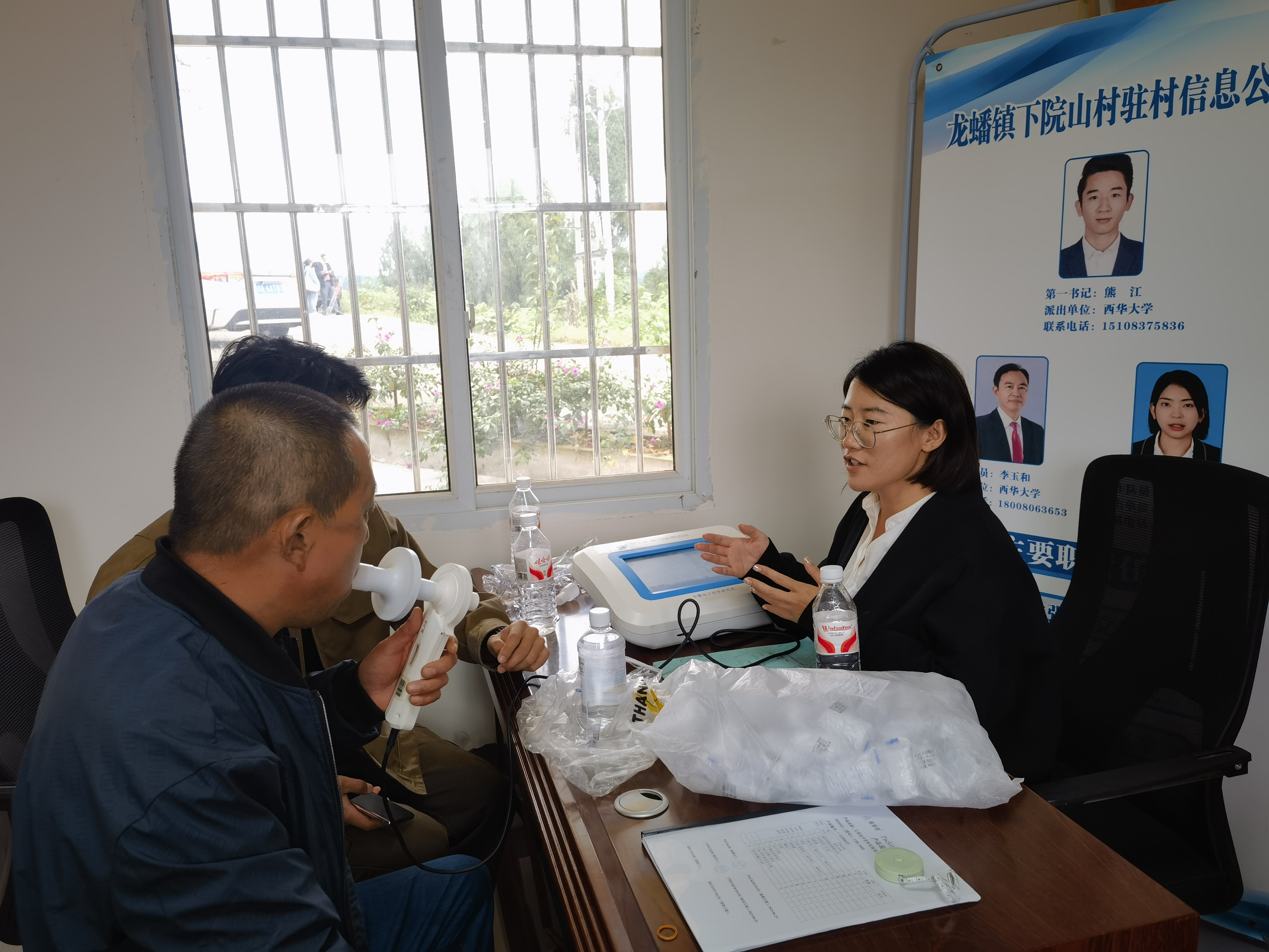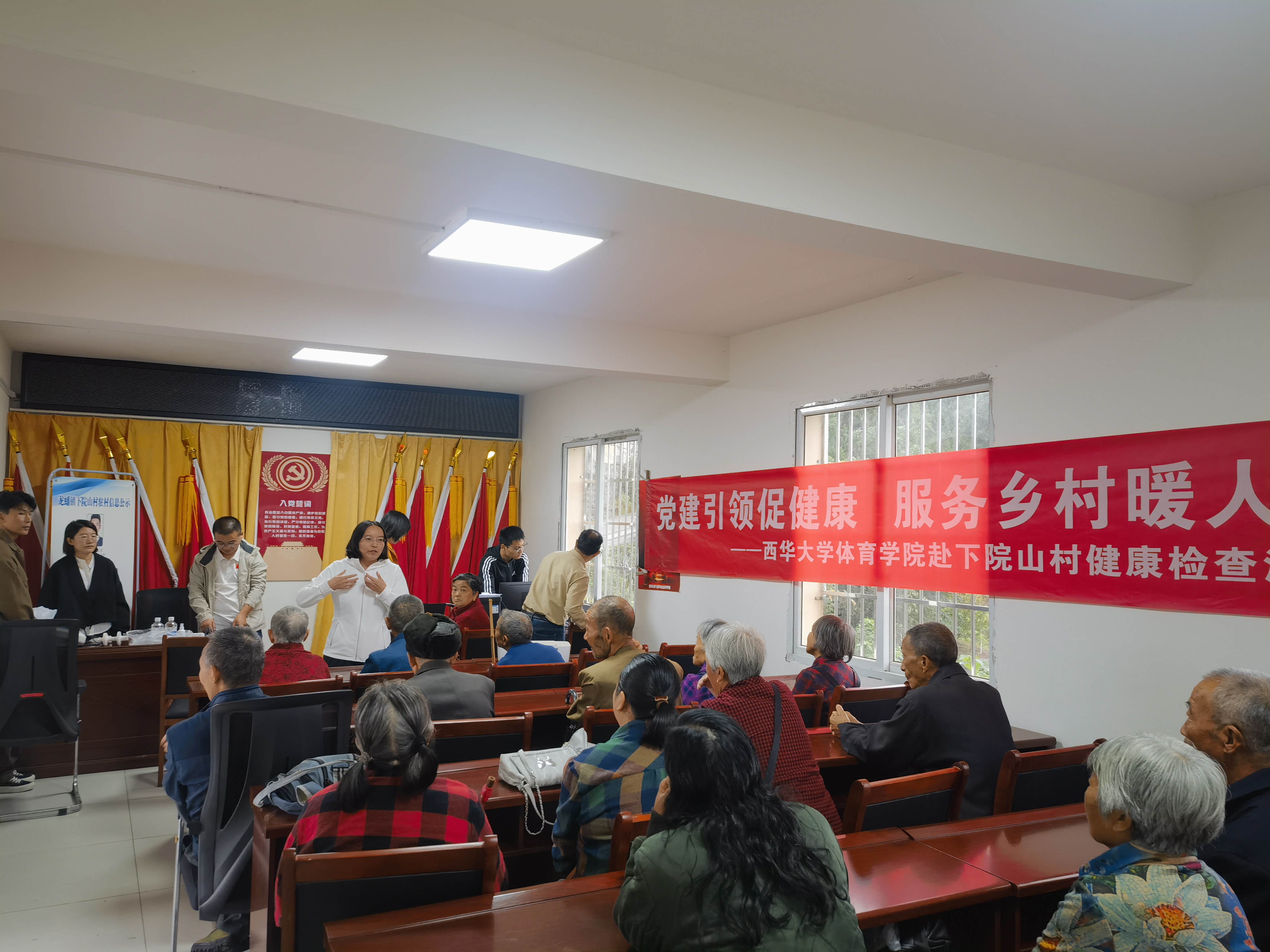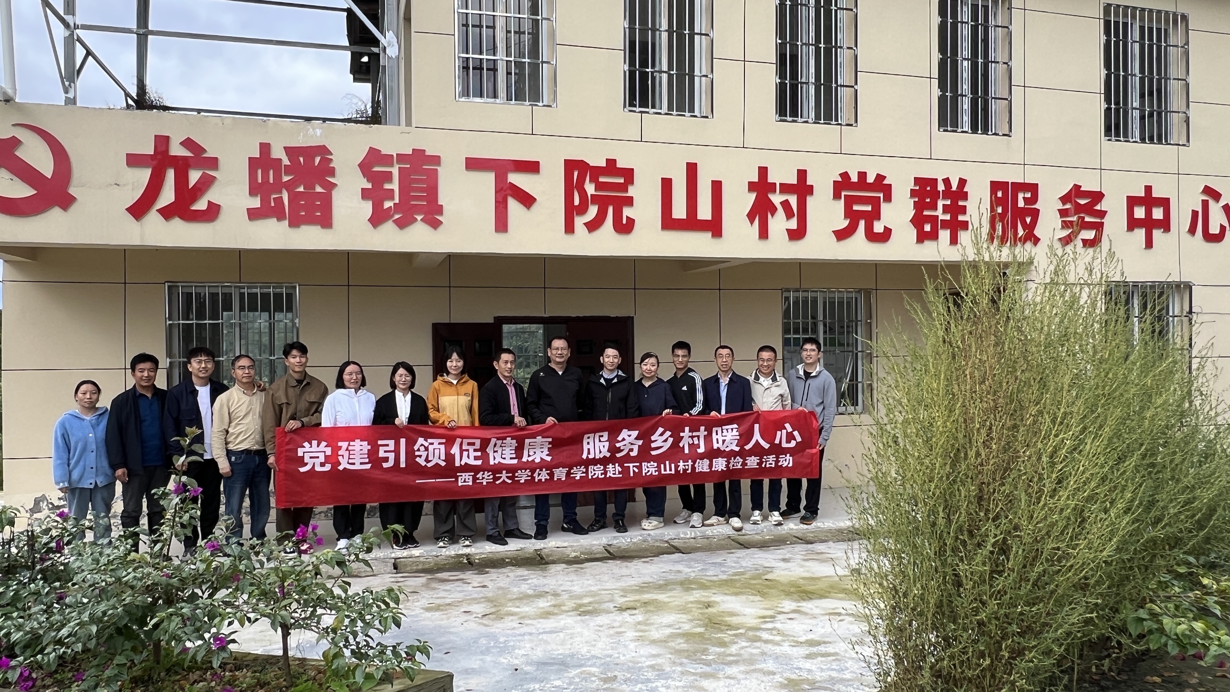 为深入推进定点帮扶工作,以实际行动助力乡村振兴,体育学院体育系教师党支部运动人体科学博士团队与体育系学生党支部近日联合组成特殊服务队,深入学校定点帮扶村——南充市嘉陵区龙蟠镇下院山村,举办了一场集健康检查、科普宣讲与党员服务于一体的特色帮扶活动,将温暖关怀与运动健康知识送到了村民家门口。此次帮扶活动由学院党委副书记钟灵波带队、经验丰富的运动人体科学专家教授领衔,学生党员和入党积极分子全程参与。他们将专业所学与服务人民的初心紧密结合,构成了田野乡间一道亮丽的风景线。