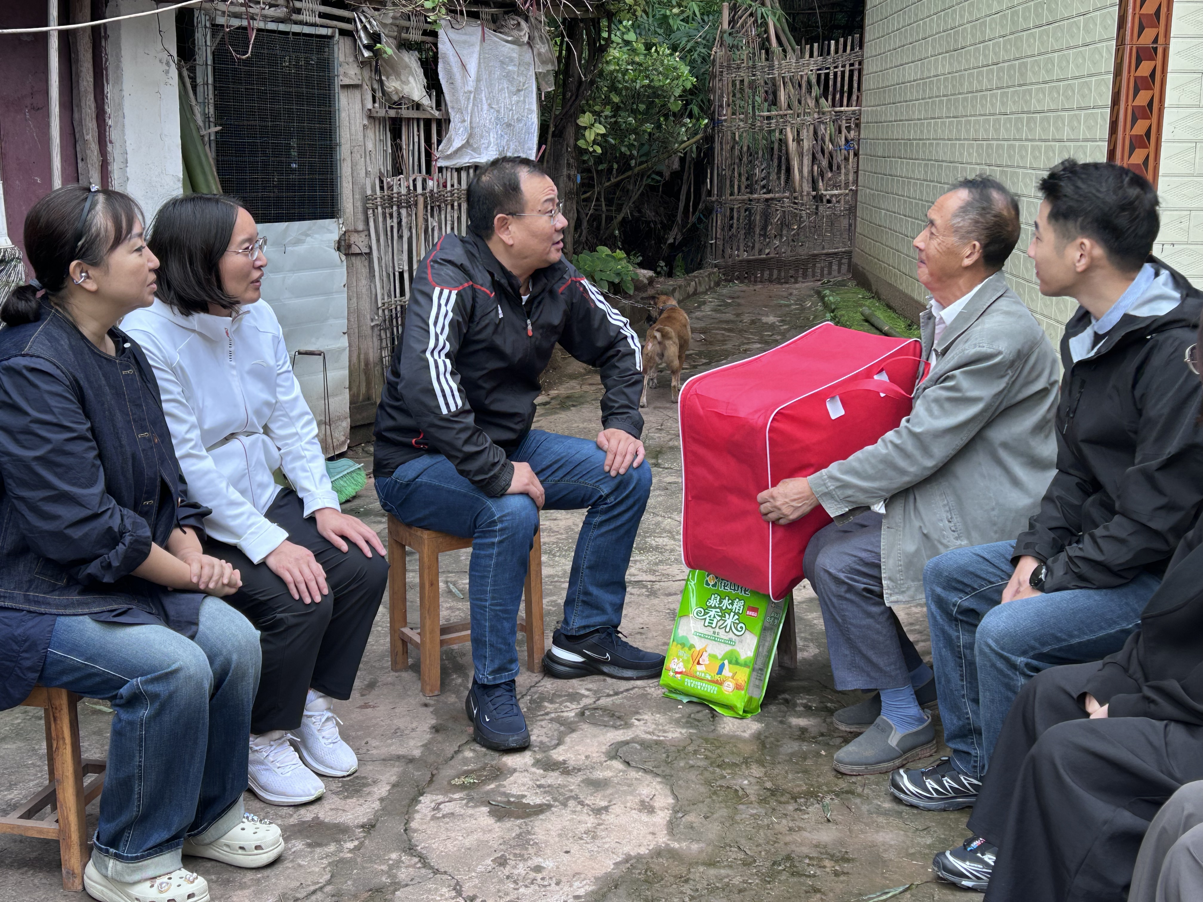 健康检查活动结束后,在我校驻村帮扶干部熊江、李玉和的陪同下,钟灵波一行走访看望了体育学院体育系教师党支部帮扶对象张昌直和冯任强,与他们亲切交谈,详细了解目前生活家庭情况、身体状况,以及目前遇到的困难,耐心讲解乡村振兴相关政策,并送上大米、棉被等日常用品,鼓励他们坚定生活信心,保持乐观向上的生活态度。