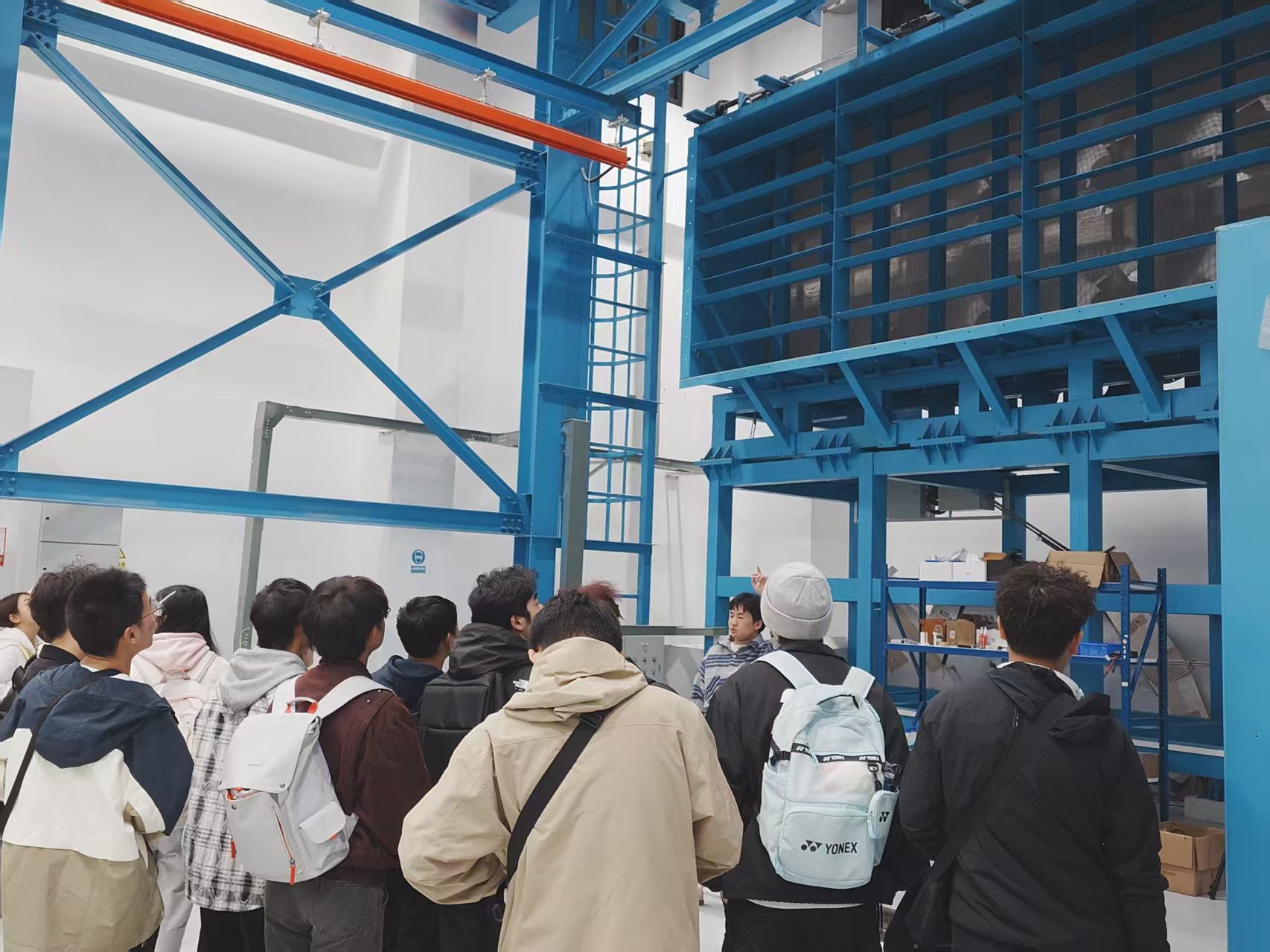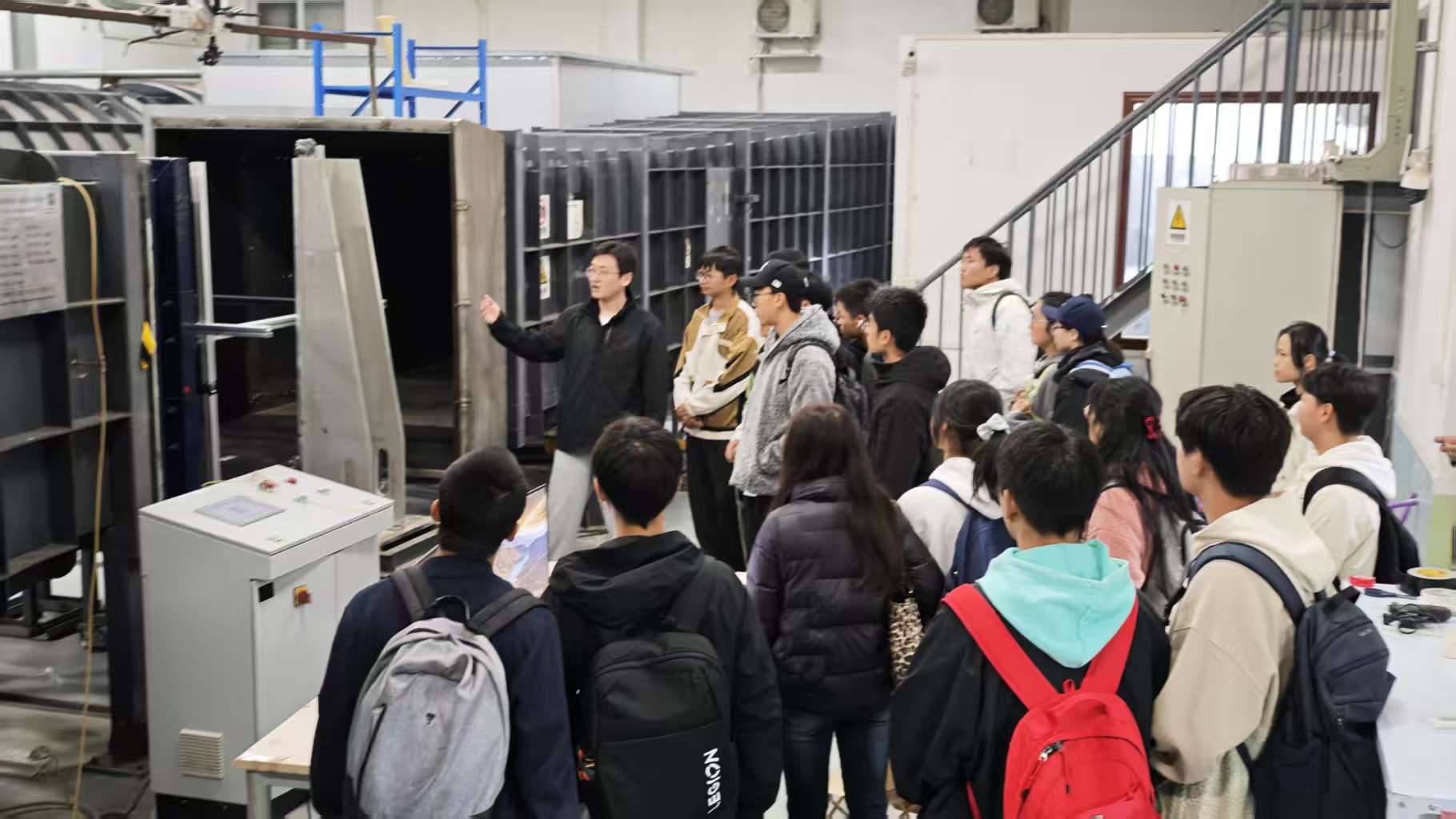 随后,队伍移步至流体及动力机械教育部重点实验室。在这里,讲解员系统阐述了风洞这一核心科研设施的工作原理、系统构成及其在空气动力学基础研究与工程实践中的关键作用。随着风洞实验流程的现场演示,书本上抽象的理论知识化为眼前直观的动态景象,新生们对这项支撑航空航天发展的关键技术有了更为深刻的理解。