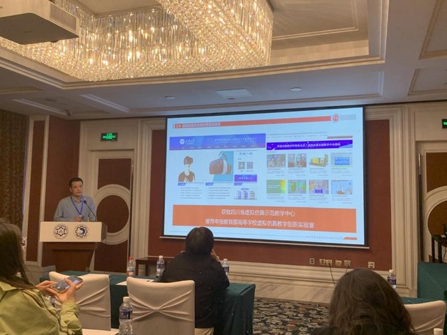 会议开幕式后,王正云受邀在“数智驱动·课程建设”主题会场上作了“课程群-能力链-生态环融合驱动——工业数字化技术课程群虚拟教研室的系统设计与实践”的专题报告。报告中,他围绕“如何让传统优势专业焕发新的活力和动力”的核心问题,通过“单课突围→集群链动→生态赋能”的演进逻辑,破解了传统教学中存在的“教师单兵作战”“知识结构割裂”“产教融合虚化”等痛点,有效促进从个体优秀到集体智慧、从资源消耗到价值创造的范式变革,展示了学院“课程建设有标杆、能力培养有体系、教学创新有平台”的良性发展格局。