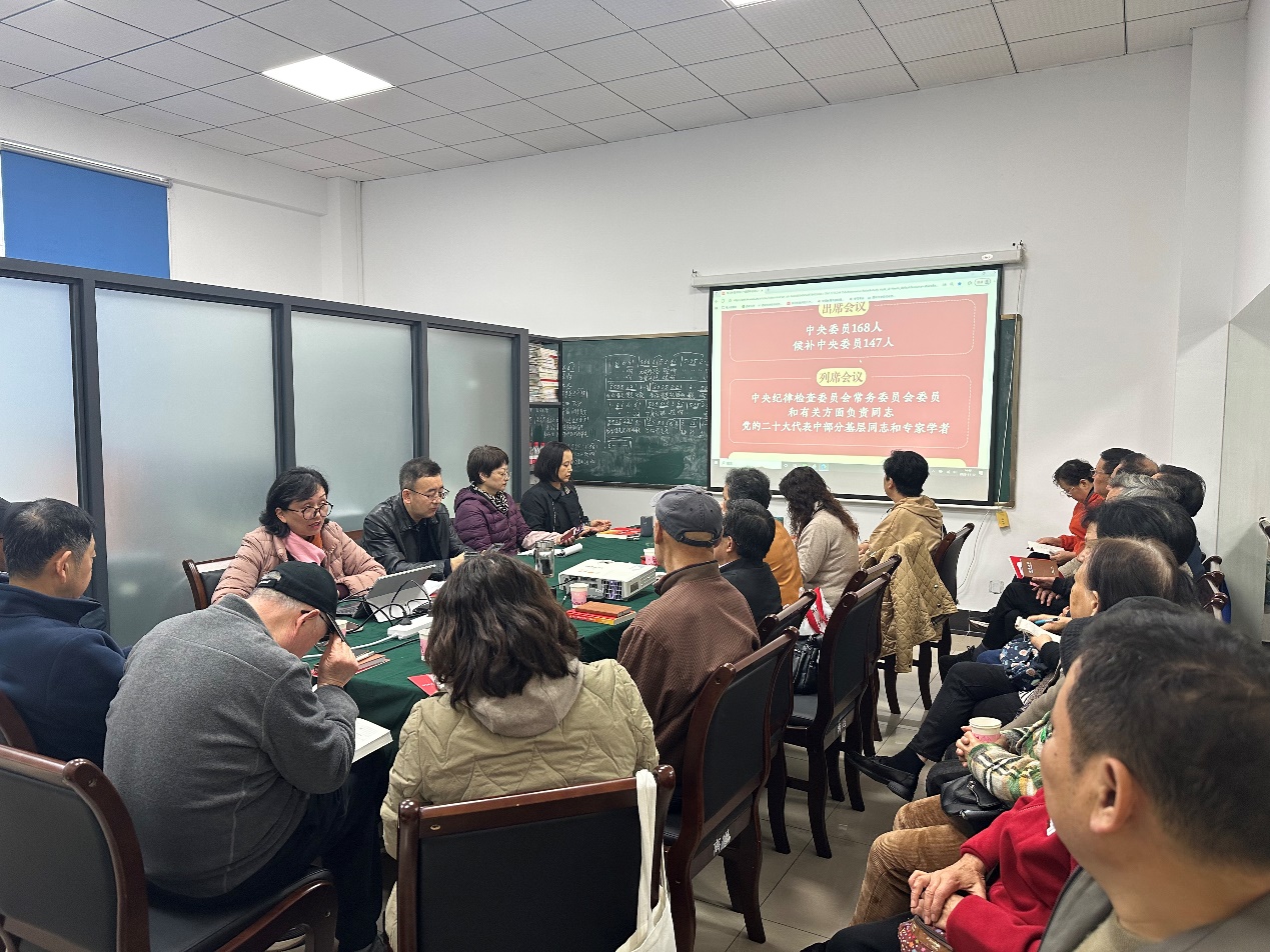 会议首先由黄燕带领大家认真学习了《中国共产党第二十届中央委员会第四次全体会议公报》,系统梳理了全会的主要精神和核心要义。聚焦学校离退休工作实际,她重点阐释了公报中关于“坚持党的全面领导”和“加大保障和改善民生力度,扎实推进全体人民共同富裕”的重要论述。她表示,学校离退休工作将始终坚持党建引领,把学习贯彻全会精神融入为老同志服务的实际中,不断完善服务保障体系,丰富学习和活动形式,激发老同志关心支持学校改革发展的热情,持续发挥老同志在传承优良校风、凝聚奋进力量方面的重要作用。