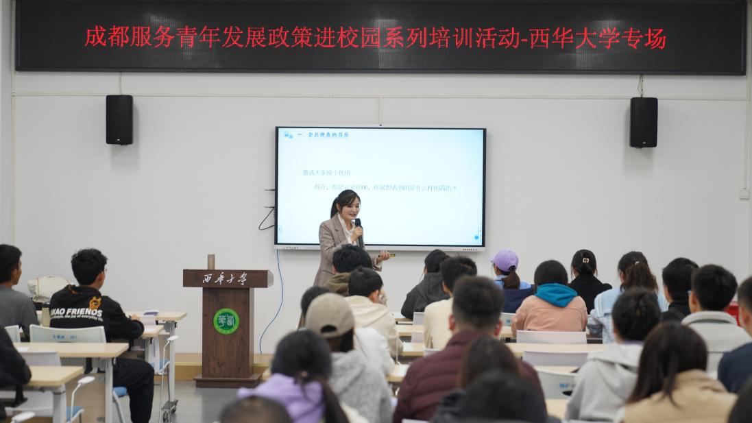 11月13日,由共青团成都市委员会、成都青年发展中心与学校招生与就业处联合举办的“成都服务青年发展政策进校园系列培训活动”在郫都校区举行。