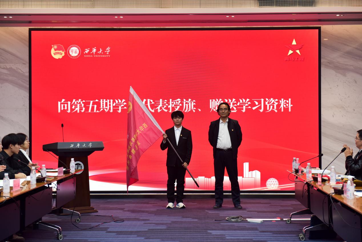 党委常委、副校长费凌向第五期青马工程卓越班学员代表授旗