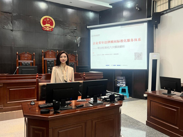 颜莉律师同时担任成都市律协证券与资本市场法律专委会副主任、国际仲裁云链第一届理事会理事,获评四川省优秀律师,在民商事领域拥有深厚的理论与实务积淀。讲座中,她系统解析了企业常年法律顾问服务的标准化建设路径,将服务内容归纳为公司治理、劳资关系、公司运营、合同管理、法律风控、专项服务六大模块,系统讲解了“基础保障—核心支撑—增值创收”立体化服务体系。