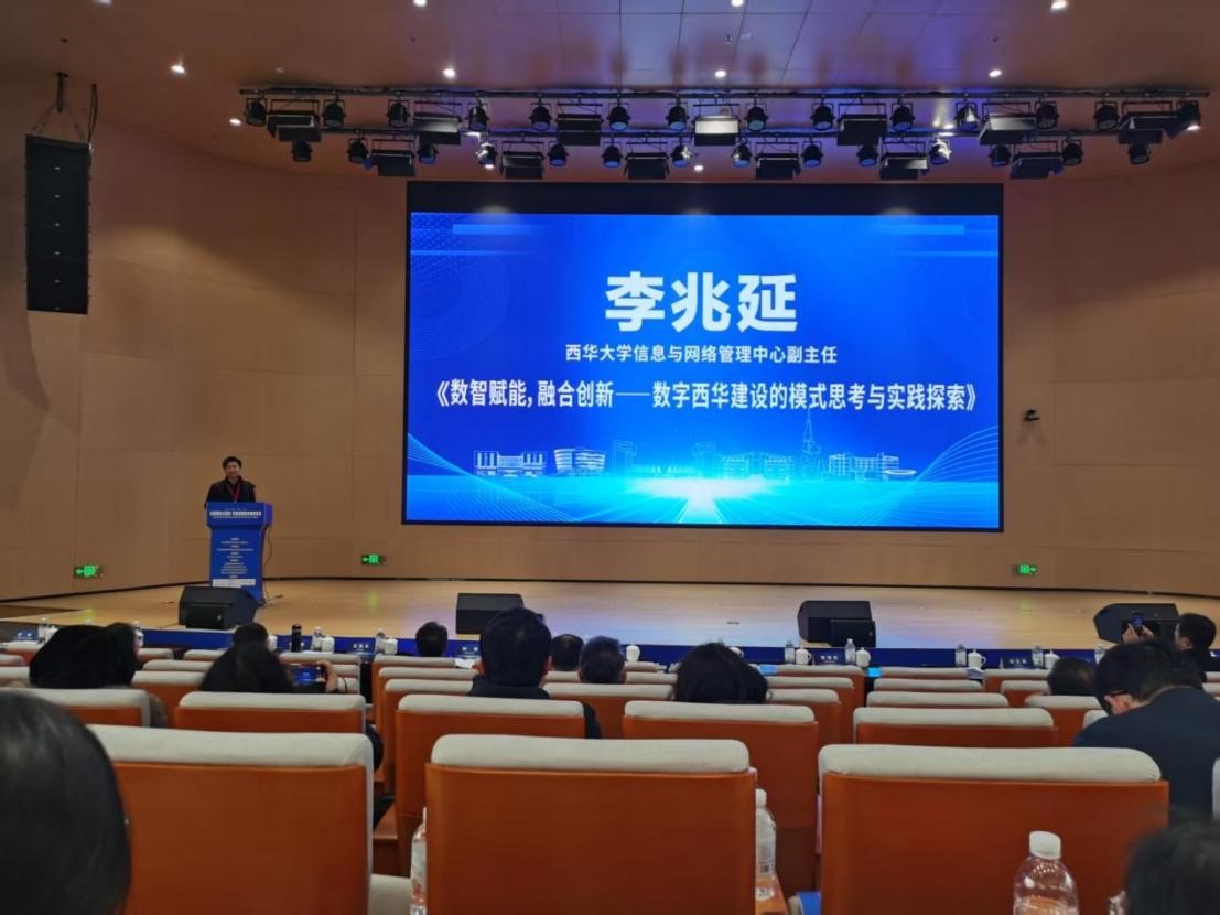 12月13日,四川省高等教育学会教育信息化专业委员会在四川城市职业学院召开“全面推动AI赋能 积极迎接数字教育变革”2025年学术年会暨第一次理事会议。省教育厅一级巡视员胡卫锋等领导出席会议,成都信息工程大学副校长舒红平、清华大学信息化工作办公室主任张小平、西南交通大学信息化与网络管理处处长李锦红等专家学者作主题报告。专委会常务理事、我校信息与大数据中心副主任李兆延受邀参会,作为案例作者现场领取“高校数字教育资源建设”优秀案例一等奖,并以《数智赋能,融合创新——数字西华建设的模式思考与实践探索》为题作报告,全面分享了学校在信息化建设中的经验做法与实践成果,获得与会专家学者的广泛关注与认可。