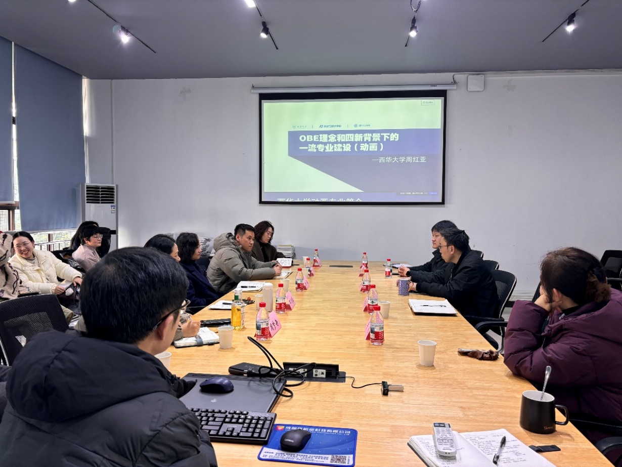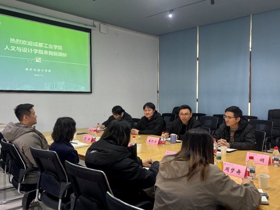 2026年1月6日下午,成都工业学院人文与设计学院院长何灏、副院长党锐及工业设计专业负责人、视觉传达专业负责人一行15人到访我院,开展交流座谈。我院院长孟凯宁、动画系主任周红亚、视觉传达设计系副主任黎珂位、支部书记魏豪彤、工业设计系教研室主任李娟等老师出席座谈会。