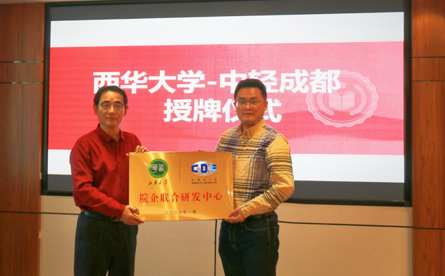 会上,中轻成都公司各部门有关负责人介绍各自业务领域及人才需求情况,双方围绕人才招聘、科研合作、实习就业等议题展开交流,并举行“西华大学—中国轻工业成都设计工程有限公司校企联合研发中心”和“西华大学实习就业基地”授牌仪式。