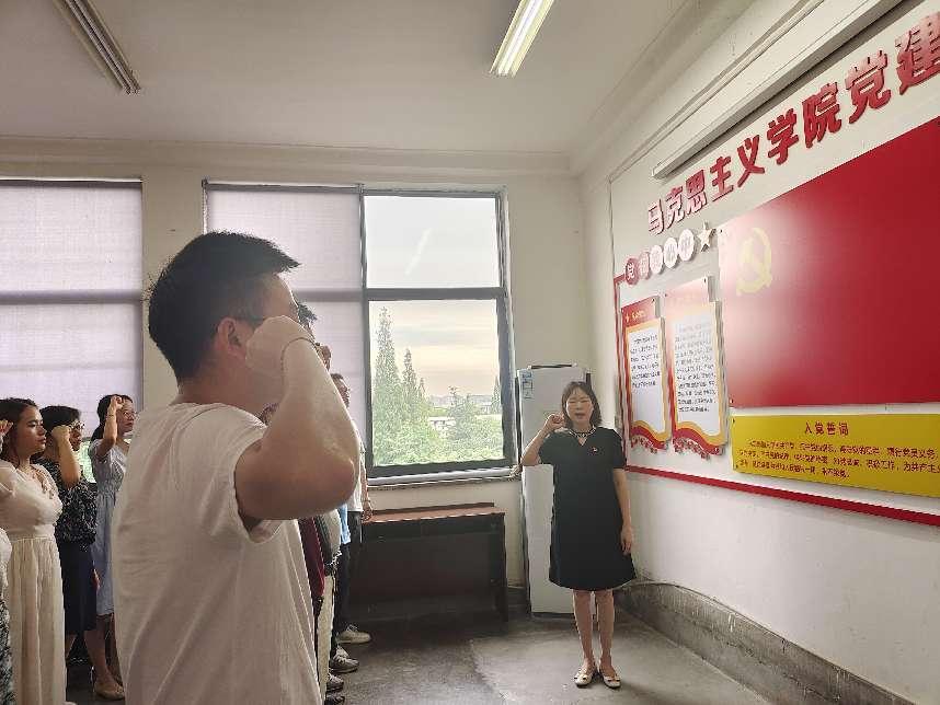 主题党日活动在一句句铿锵有力的入党誓词中拉开序幕。马克思主义学院党委书记万远英领誓,学院党委委员、各党支部书记、师生党员代表庄严宣誓,铭记入党初心,感悟党的奋斗历程,增进对党的认识和情怀,增强爱党护党的政治自觉、思想自觉、行动自觉。