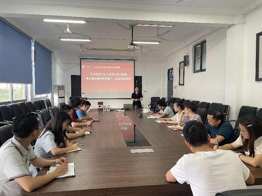 马克思主义学院师生党课同步开讲。学院党委书记万远英以《学习宣传贯彻习近平总书记来川视察重要指示精神和省第十二次党代会精神》为主题,为学院党委委员、各党支部书记和教师党员代表呈现了一堂催人奋进的主题党课,进一步筑牢了广大教师党员坚定信念、担当尽责、勇往直前的决心。