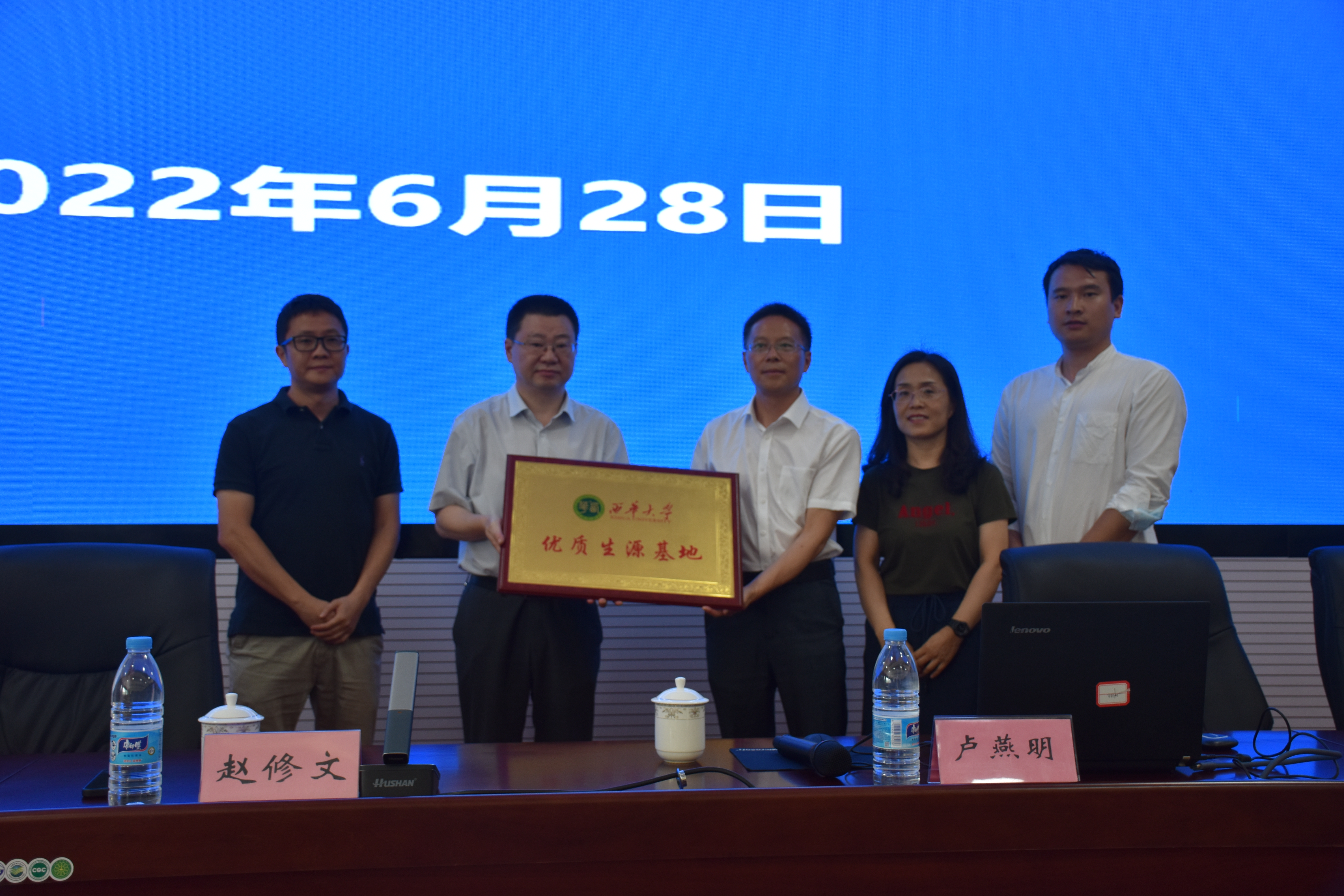 威远县委常委办主任马建文、威远中学校副校长卢燕明对赵修文一行表示热烈欢迎,卢校长带领参观了威远中学校,介绍了学校的历史沿革和基本情况。随后,在学校敦行楼会议室举行了招生宣讲与“优质生源基地”授牌仪式。