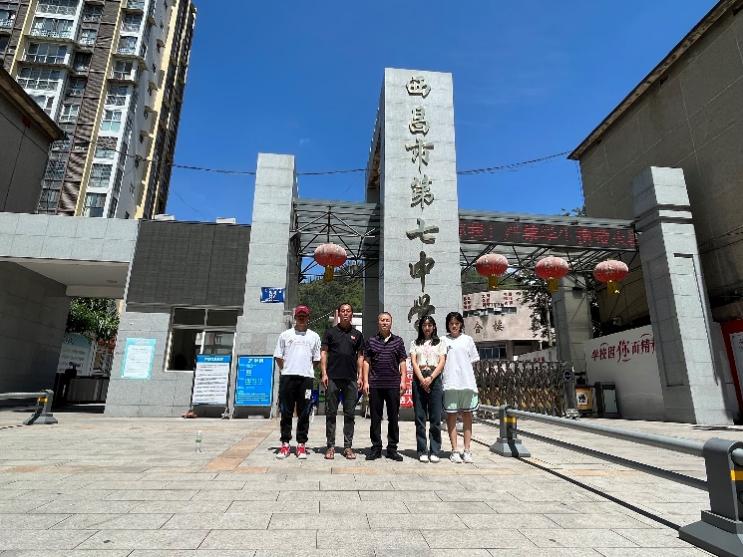 最后,团队前往西昌七中的招生办,与学校校长陈龙进行了面对面的交流沟通。队员向陈校长讲解西华大学招生政策、录取人数、报录比、往年分数线等,留下联系方式建立联系,希望七中更多、更优质的同学报考西华大学。队员们对相关老师表达诚挚的谢意后,在校门前合影留念、分别。