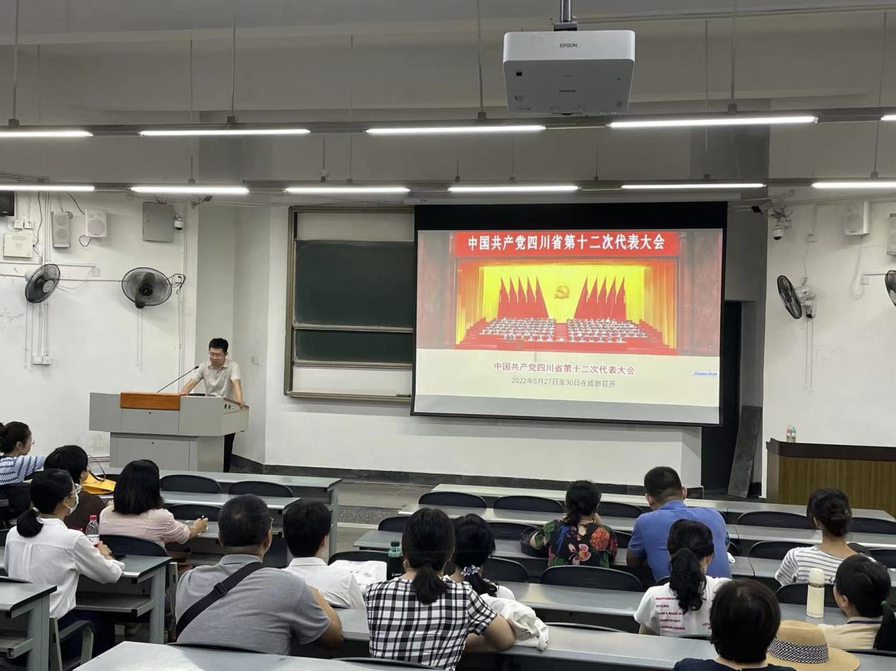 为贯彻落实好习近平总书记对四川工作的重要指示要求和四川省第十二次党代会精神,以创新的思路、务实的举措、昂扬的精神状态迎接党的二十大胜利召开,按照学校党委关于在“七一”前后开展庆祝中国共产党成立101周年系列活动的通知,学院班子成员于6月30日至7月7日,结合学院工作实际采取集中备课和分开授课的方式为学院全体教职工党员讲授了主题为“深入学习领会省第十二次党代会精神,凝心聚力,务实创新,砥砺奋进谋发展”的党课。