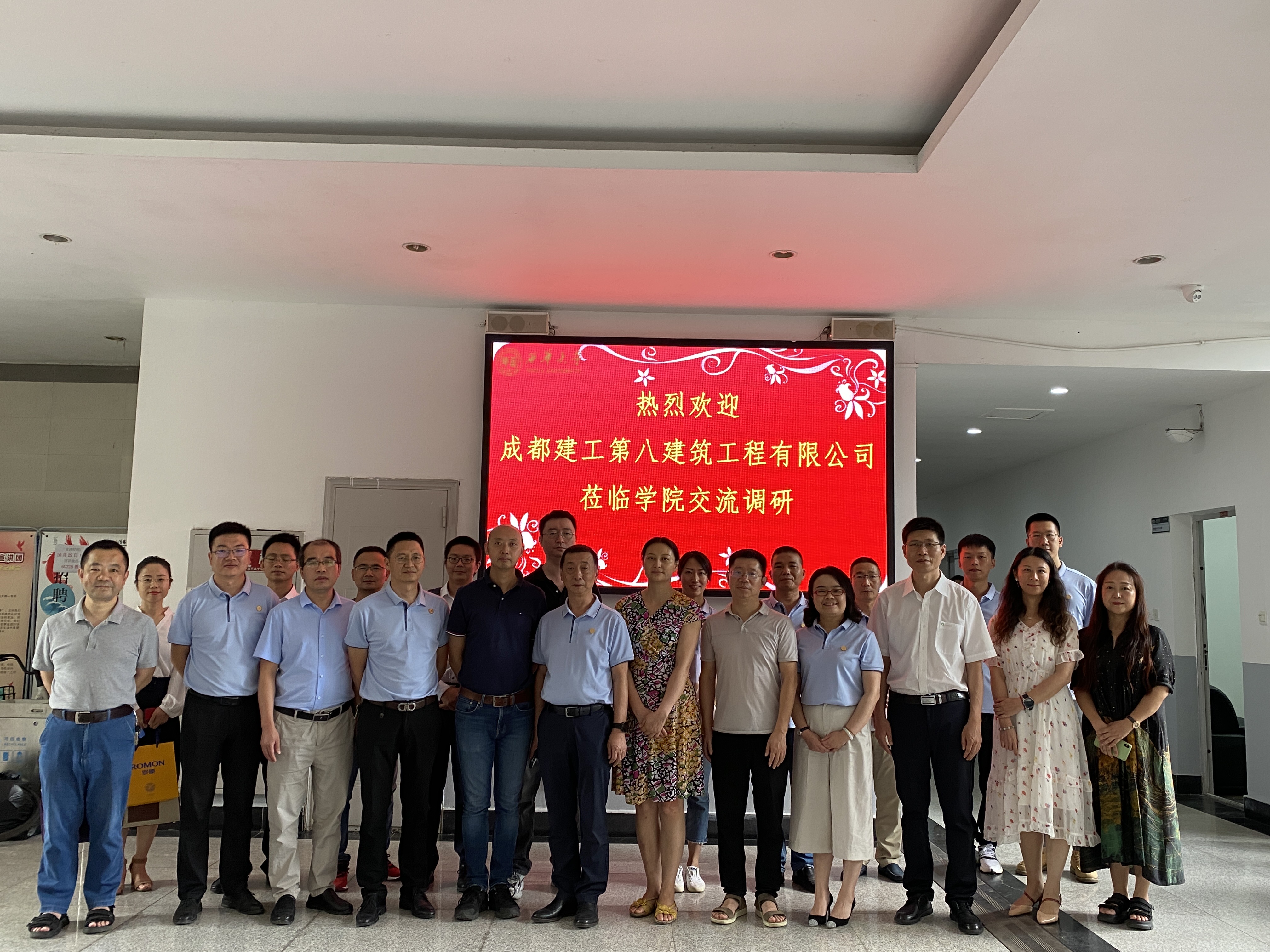 7月7日下午,成都建工第八建筑工程有限公司董事长翟晓明带领公司党委副书记、董事、总经理余万全,公司党委委员、副总经理唐晓妍,公司总工程师王础一行14人到建筑与土木工程学院交流考察。建筑与土木工程学院党委书记顾鸿飞、院长舒波,法学与社会学学院党委书记张雪征、院长张邦铺,以及两个学院的副院长、学院系部系主任和系部骨干教师在第六教学楼D区105会议室与公司举行会谈,会议由顾鸿飞主持。