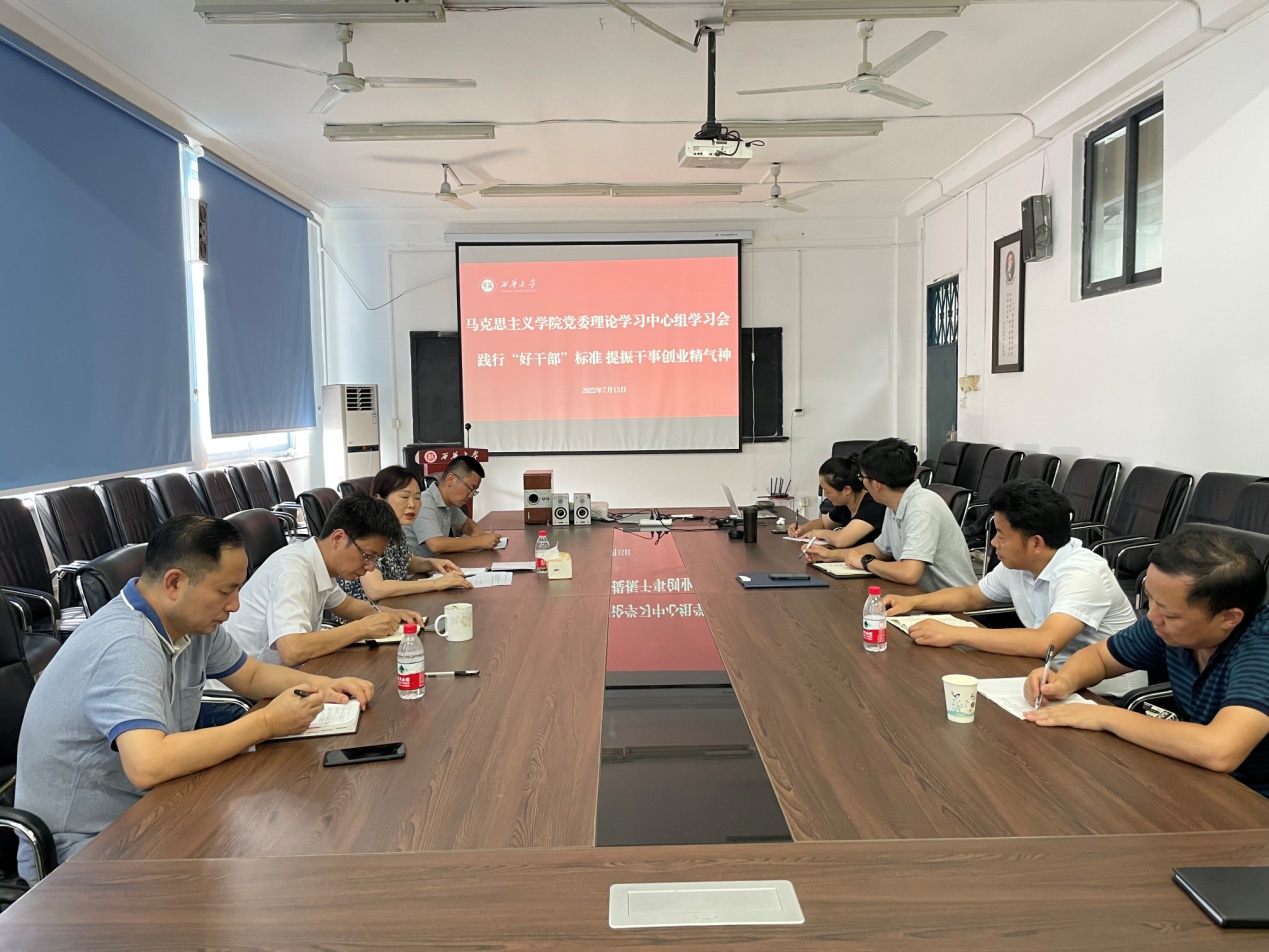 7月15日下午,马克思主义学院在学院会议室召开党委理论学习中心组学习会,专题学习“好干部”标准,进一步凝聚共识,提振干事创业精气神。学院党委全体委员参会,党委书记万远英主持会议。
