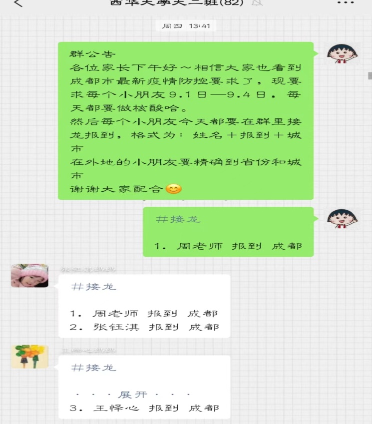 9月1日,老师们积极筹备,在班级群发出通知,详细说明了报道时间和要求,线上报道得以顺利开展。