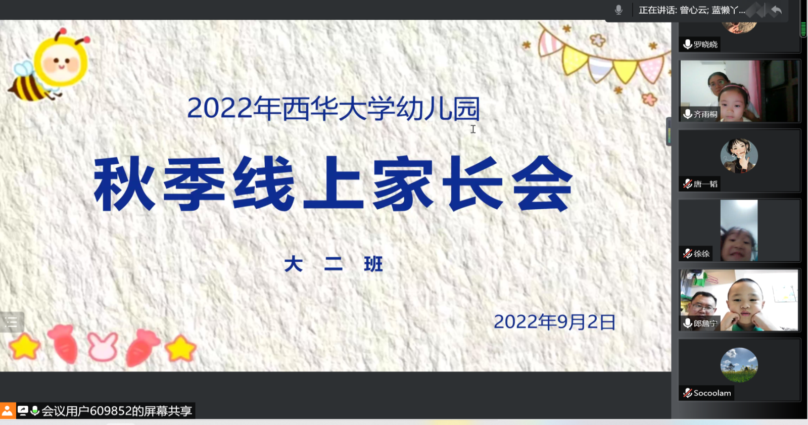 疫情隔绝了面对面的交流,却隔绝不了家园间的心意相通,本次线上家长会的召开,拉近了家长和幼儿园之间的距离,促进了家长对幼儿园工作的支持和配合,同时为幼儿园后期各项工作的开展打下了坚实的基础。让我们“疫”起渡过难关,期待不远的将来,在美丽的西华大学幼儿园相聚。
