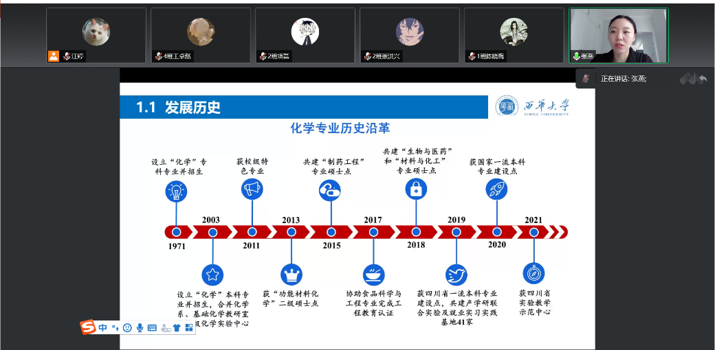 9月7日上午,理学院通过线上会议的形式开展2022级本科生入学教育之化学专业教育,特邀化学系主任张燕、化学专业教师代表马梦林及化学专业优秀本科毕业生冯金凤担任主讲人,本次会议由化学系教工支部书记汪婷主持,2022级全体化学专业本科生参加。