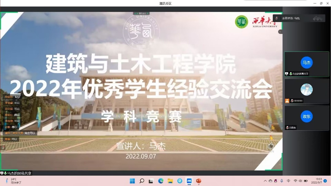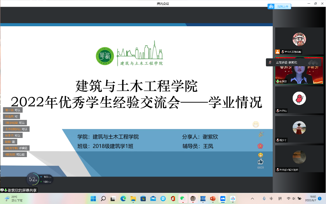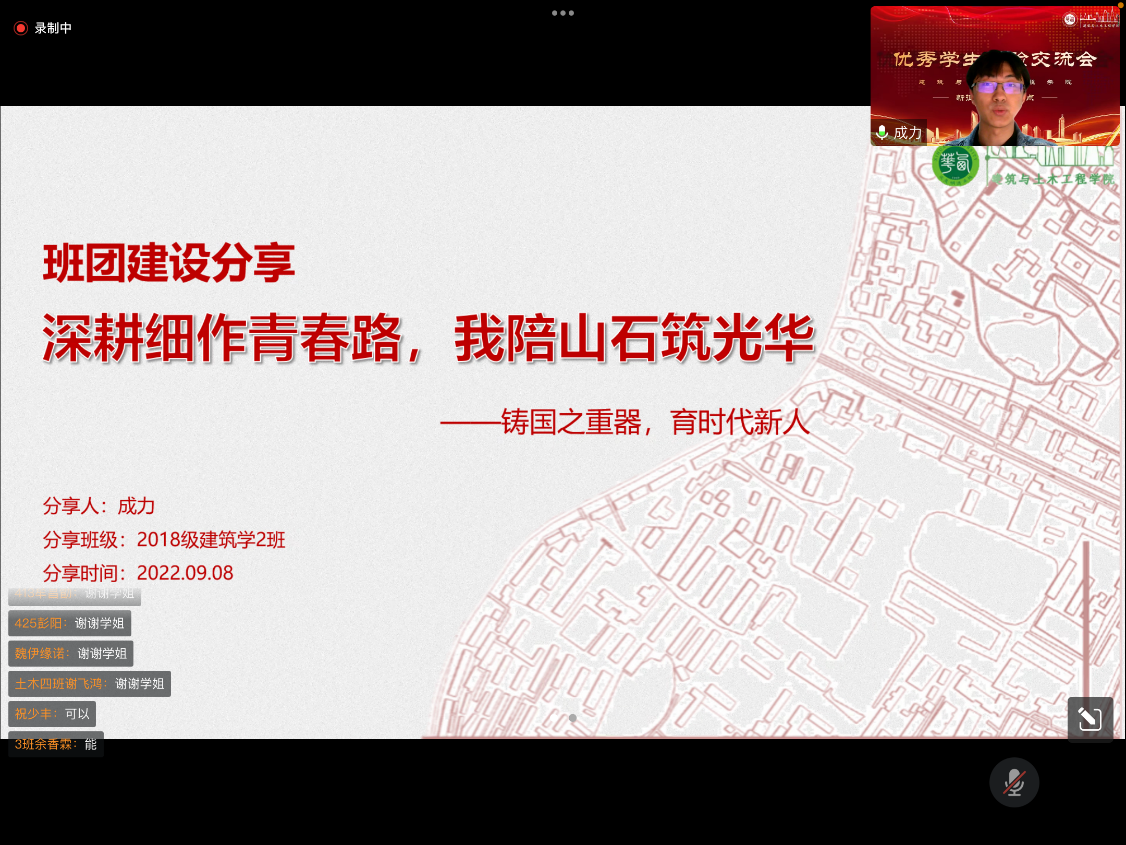 为帮助2022级新同学了解大学学习生活,促进新生尽快适应大学生活,建筑与土木工程学院组建“砼新砼行”宣讲团树立青年榜样作用,于9月7日至8日线上举办“优秀学生经验交流会”。本次宣讲团共邀请到19位来自不同年级专业的优秀学生,结合自身经历从学业情况、学科竞赛、志愿服务、寝室文化、班团建设五个方面向新同学们分享经验。此次交流会共召开8场,覆盖郫都校区及宜宾校区近1200名新生,累计观看次数4000余次,累计点赞量上万次。