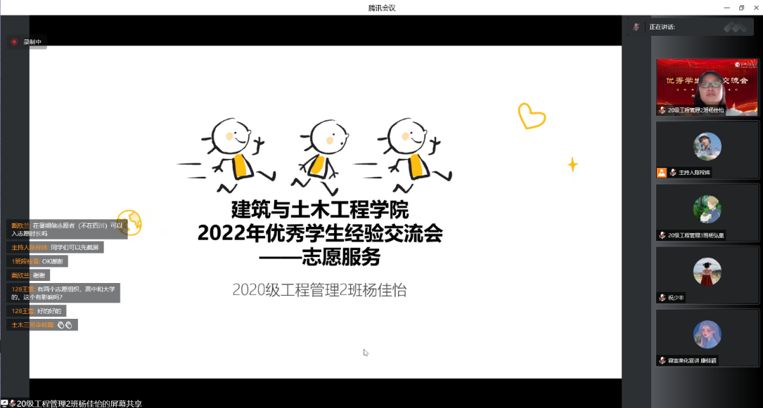 榜样的力量是无穷的。青年榜样是一种向上的力量,是一面向善的旗帜。本次优秀学生经验交流会有效帮助新生在居家学习期间对大学生活有了进一步的了解。希望新同学们可以以饱满的精神、昂扬的斗志进入大学,顺利开启大学新生活,完成高中生向大学生的角色转变。