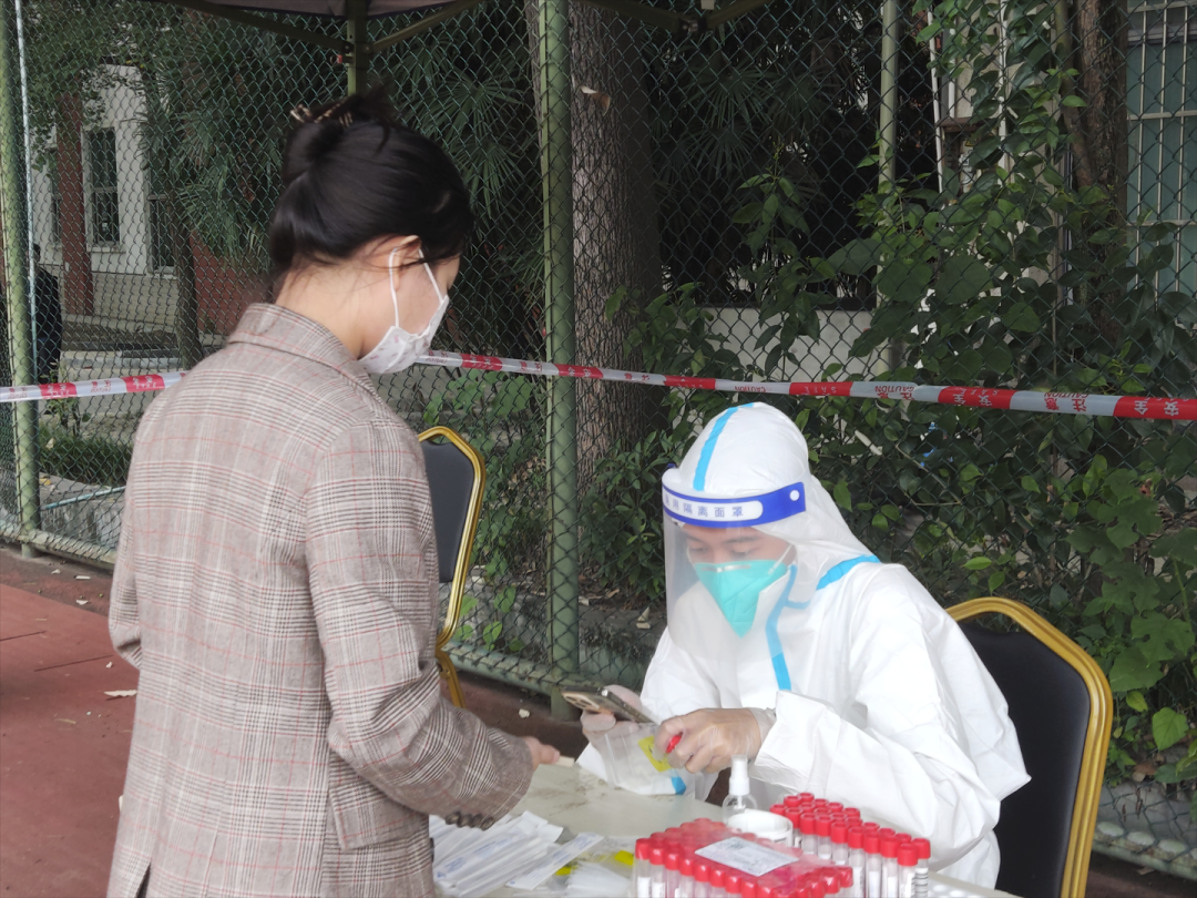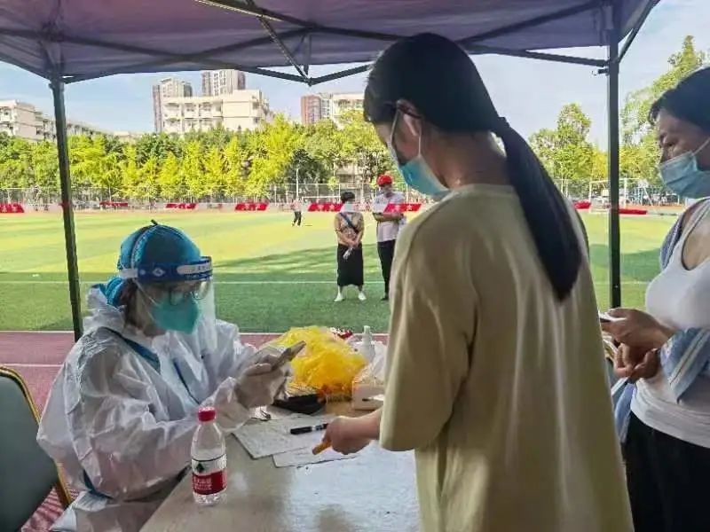 为积极相应暂缓返校、抗击疫情号召,校外部分学生主动参与社区志愿服务,严格把控,为自己身边的小区居民站好岗、把好关,全力服务居民群众。2020级学生刘家成说:“作为一名中国共产党党员就是要有有事冲在最前方的魄力,要发扬为人民服务的精神,发挥先锋模范作用。我每天的衣物会被汗水打湿,手掌也被汗水泡的发白发皱,我体会到了为我们做核酸医生的辛苦。”