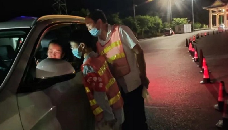 学生卢永林负责在高速路口站岗检查过往车辆健康码、核酸检测报告、行程码和旅居史。