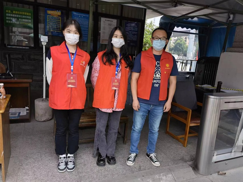 电气与电子信息学院教师党员叶凯、陈莎莎、刘益丰在成都市疫情最严重的时候志愿加入校园疫情防控工作,作为志愿者站在了抗疫防控阻击战最前线,义不容辞地为学院抗疫贡献自己的宝贵时间和青春力量。