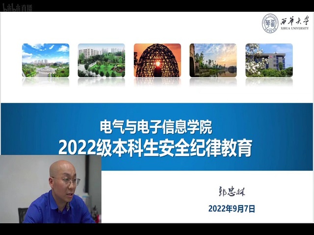 9月7日上午,院党委副书记郭忠林为学院2022级研究生新生开展思想政治教育;下午,他通过学院官方B站账号,向学院2022级本科生直播进行新生安全纪律教育,希望大家在疫情下听好每一堂线上入学教育课,在返校后遵守纪律努力学习,争做新一届向上奋进的电气人。