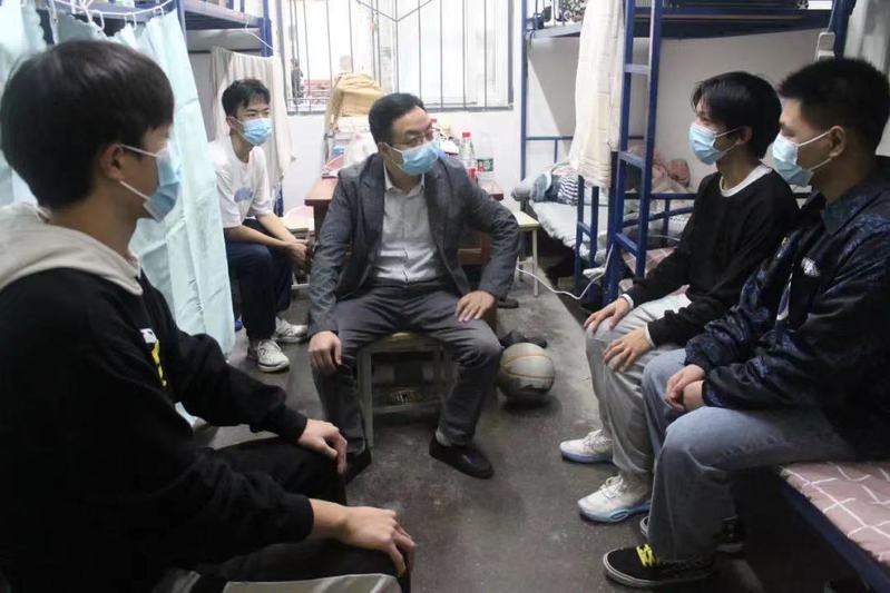 徐攀热情地与同学们谈论日常生活,并新生进行亲切的交流。徐攀希望大家适应新环境,保持良好的心态。同时,徐攀向新生介绍了学校宿舍改善计划,鼓励新生志存高远,重视室友情感。
