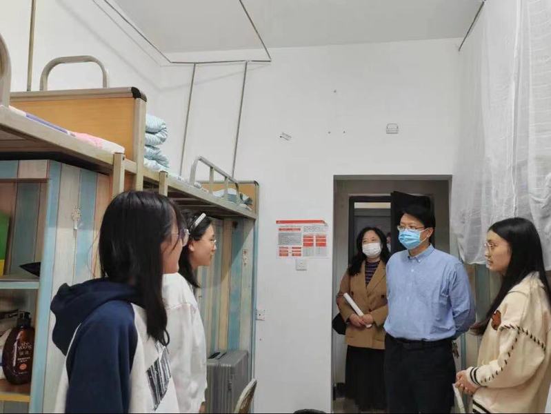 走进新生宿舍,潘殊闲细心询问同学们入校适应情况,并表示任何问题都可以向老师或学生会反映。潘殊闲院长强调,同学们应加强自身安全防范意识,校园内监控虽覆盖范围广,但仍应提高警惕。