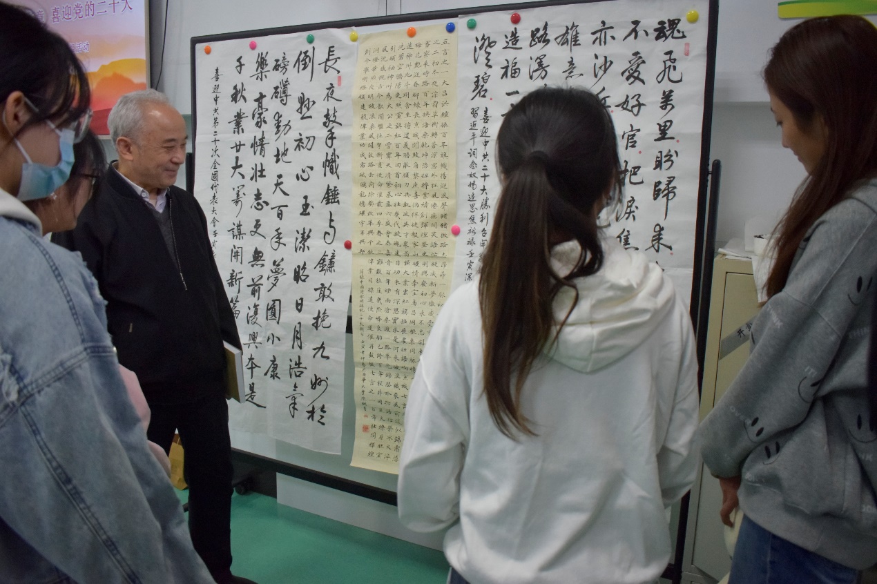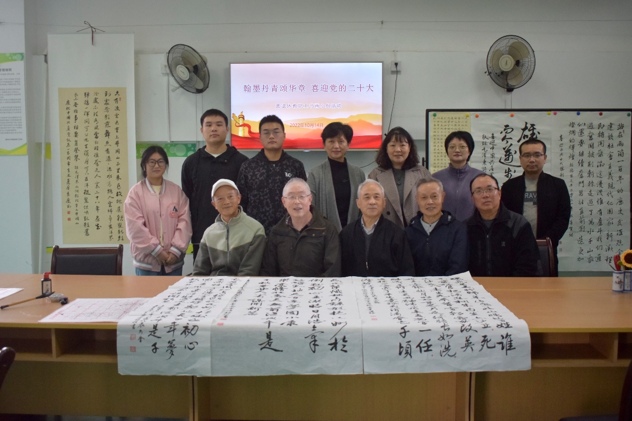 10月14日,离退休党委开展了以“翰墨丹青颂华章 喜迎党的二十大”为主题的离退休教职工书画小组活动,活动特邀我校书画协会的青年学子参加。老少两代人欢欣鼓舞,用手中笔,心中情挥毫泼墨,以书画作品表达奋进新征程、建功新时代、喜迎二十大的心声。这些作品形式多样、内容丰富、主题鲜明,集思想性、艺术性、观赏性于一体,表达了对党的无限热爱和美好祝愿。