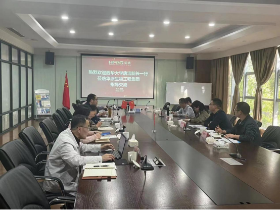 唐洁在介绍了本次来访的目的后,对食品与生物工程学院的专业建设、人才培养、学生就业等基本情况作了介绍。唐洁表示,学院的优势学科专业领域与华派集团在动保、大健康领域重点发展产业有着高度的契合,双方合作前景广阔,希望华派集团旗下各个企业为学校毕业生提供更多优质岗位,建立校企合作机制,联合培养人才,协同开展科学研究,架起校企合作的人才桥梁、情感桥梁。