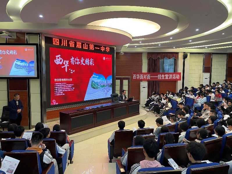 在宣讲会中,法学与社会学学院党委副书记廖磊向眉山第一中学的高三学子对西华大学的基本情况、办学特色、师资力量、培养模式、奖助体系等多个方面以及法学与社会学学院的详细情况进行了全面介绍,并现场解答学生关心的招生政策、就业方向、录取分数等问题,使广大考生更加坚定报考我校的信心,宣讲在此起彼伏的掌声中结束。