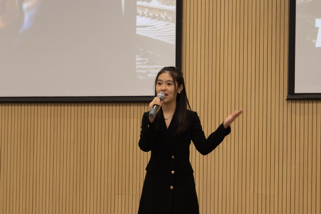 最后,2021级国际经济与贸易专业学生袁瑞铃以扎实的语言文字功底、饱满的精神面貌和极具感染力的演讲在本次比赛中脱颖而出,一举夺魁。她以“燃烧青春风华,复兴强国梦想”为题,描绘了电影《万里归途》中国外交官受命前往战乱国家协助撤侨的故事,展现出中国气量,歌颂了盛世中华。