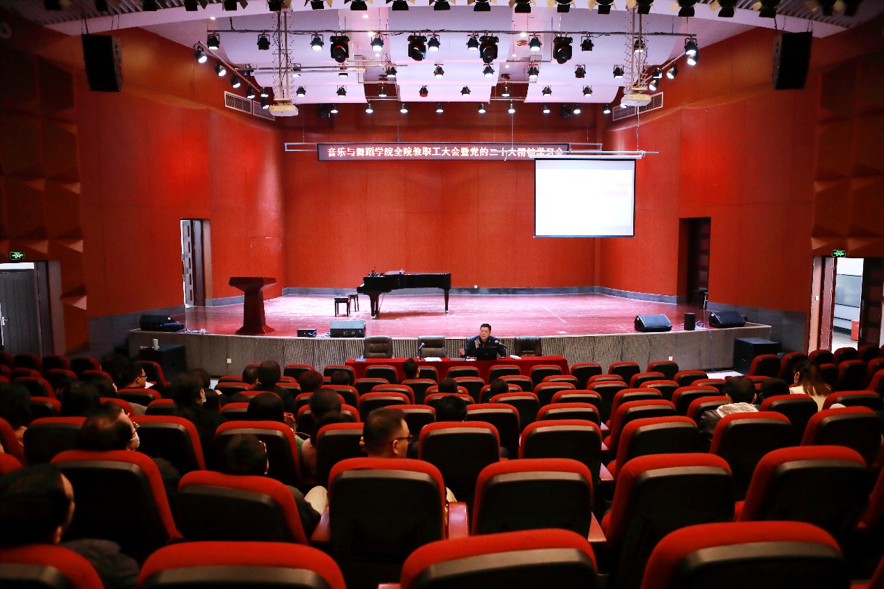 11月3日下午,音乐与舞蹈学院召开全院教职工大会暨党的二十大精神学习会,集中学习了党的二十大报告精神。学习会由学院党委书记曾贤主持,学院全体教职工参会。
