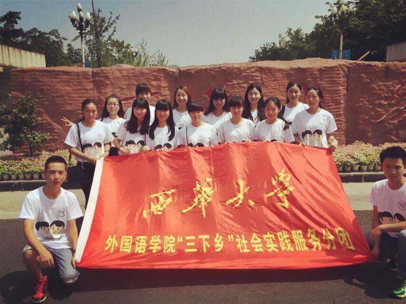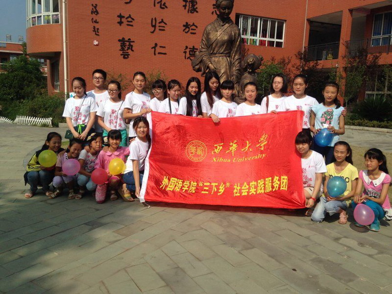 | 伴着烈日骄阳,外国语学院2015年暑期“三下乡” 之“筑梦队”、“Fantasy队”分别赴眉山丹棱县仁美镇和张场镇开展为期一周的暑期社会实践活动。 10日下午,两支队伍分别在学院王丹丹老师和李亚老师的带领下到达目的地。筑梦队队员得到丹棱县仁美镇政府领导和仁美小学领导的热情接待。11日上午,两支队伍分别举行“开营仪式”。开营仪式上,丹棱县关工委主任文主任致辞,他讲到,西华大学外国语学院的大学生们的志愿者精神让人敬佩,同时也感谢志愿者们不辞辛劳为当地小学生送来知识、快乐和关怀,也希望参加夏令营活动的小朋友能珍惜此次机会,努力学习,拓展眼界。 据悉,本次社会实践活动以“传递红色革命精神,弘扬社会正能量”为主题。时值世界反法西斯战争胜利70周年之际,两支队伍分别通过讲述抗战英雄人物事迹,分享抗战故事,激发当地小学生的爱国热情,积极传递正能量。并且针对大多数小学生是留守儿童的实际情况,两支队伍通过团队心理辅导、素质拓展等活动,注重引导小学生形成健康的心理。同时, 两支队伍结合自身专业知识,为当地小朋友带来了语言乐趣,培养了学生学习语言的兴趣。