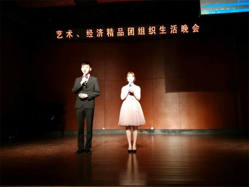| 5月8日晚7点,由艺术学院与经济学院共同举办的精品团组织生活晚会在艺术大楼音乐厅开幕,来自两个学院的200多名学生参加了本次晚会。 晚会在全场同学合唱的共青团团歌中正式拉开帷幕。开场,艺术学院2015级环艺专业魏梦婷同学为大家带来了拉丁舞《IF I WERE A BOY》,热情的舞蹈瞬间点燃了观众们的热情。紧接着,经济学院的魔术表演《心灵游戏》让在场的观众啧啧称奇,获得了热烈的掌声。接下来的民歌对唱《龙文》、2015级音乐学好声音成员演唱的《冬天来了》、2014级音乐学器乐合奏《天鹅》等节目调动起了现场观众的热情,将整个晚会的气氛推向了了高潮。晚会中间还穿插了令同学们激动不已的微信抽奖环节。最后,晚会在小合唱《送别》中完美落幕。 本次晚会的成功举办,为在场的观众带来一场精彩的晚会派对,使同学们切身体会到团组织生活的多姿多彩。