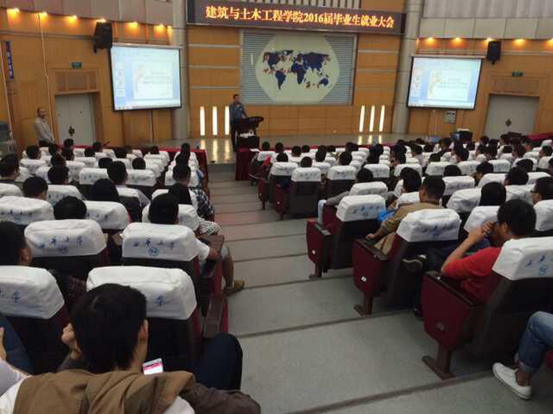 | 9月18日,建筑与土木工程学院在四教报告厅针对2016届毕业生近期参加就业双选会所面临的具体问题开展了就业指导报告会,学院特别邀请到学校招生与就业处信息科李强老师作专题讲座。学院党委副书记熊华、就业工作联系人顾鸿飞、毕业班班主任杜昊静以及2016届毕业生参加会议。 首先,熊华分析了当前大学生就业的形势,明确指出大学生就业压力巨大,要求同学们认真准备就业简历,勇于走出校门,积极拓展就业渠道,努力就业。随后,李强老师围绕“面试礼仪”、“面试技巧”、“如何谈薪酬”三个方面,结合同学们的实际情况,进行了专题讲座,给同学们就业提供了最直接的帮助。最后,顾鸿飞把学校就业处关于毕业生就业的相关要求作了详细阐述。 通过此次就业指导会,学生收获颇丰,部分学生会后感言:“听了后,方向感明确了,不像前几天那么迷茫了。” 学院历来重视学生就业工作,在召开毕业生就业指导工作会以外,还通过学院的LED屏幕循环播放学校的就业工作手册,并计划制作学生签约情况展示视频,努力营造积极就业的工作氛围,调动更多的资源为学生就业服务。