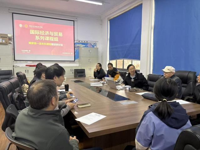 为充分发挥国家级一流本科课程的引领示范作用,全面提升国际经贸类专业人才的培养质量,3月19日下午,经济学院经济贸易系在一教4005会议室组织开展“一流课程引领・数智教学赋能・国贸专业提质・人才培养增效”专题教研活动。学校督导兰虹、王文君莅临指导,系主任左世翔主持,副系主任赖周静记录。