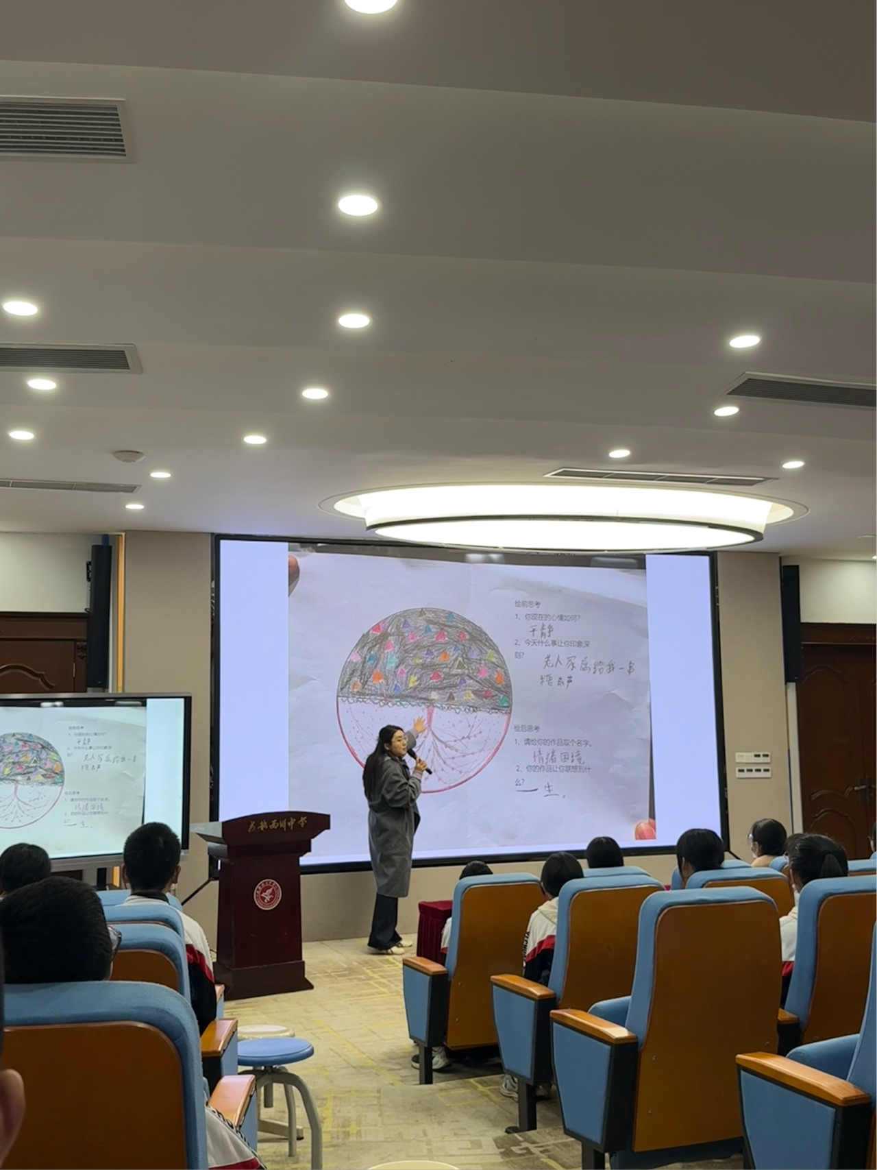 3月19日,社会工作与健康管理学院高倩云博士带领黎玉姣、肖茗月、刘晨蕾、黄天昊、唐兴宇等学生走进成都西川中学,面向初二年级学生开展以“初识心理学与心理辅导”为主题的心理科普专项服务活动,为青少年群体送上专业的心理知识与温暖的心灵陪伴。